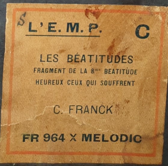 Les Beatitudes Home » Rollen » Les Beatitudes R009 | LEMP-FR-964-X | Les Beatitudes | Fragment de la 8 beatitude | Heureux Ceux qui souffrent | C Franck Zie ook: Grande sonate en Re LEMP-HI-9500-X << Terug naar de lijst