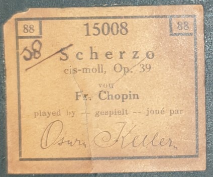 Scherzo Home » Rollen » Scherzo R009 | XXX-15008 | Scherzo | Cis-moll Op. 39 | Fr. Chopin Zie ook: Berceuse Auf wiedersehn << Terug naar de lijst